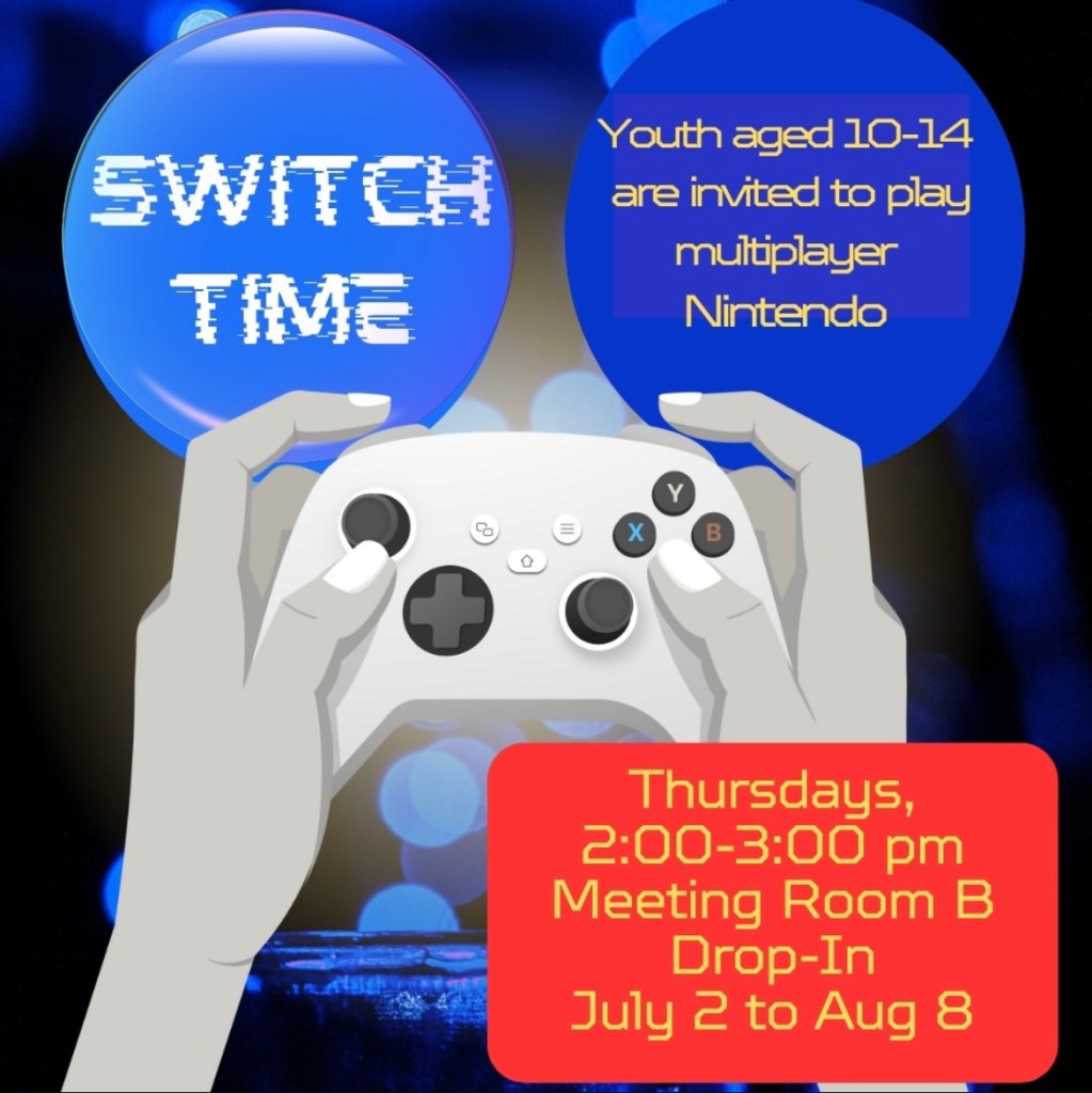 Youth aged 10-14 are invited to play multiplayer Nintendo. Room B.